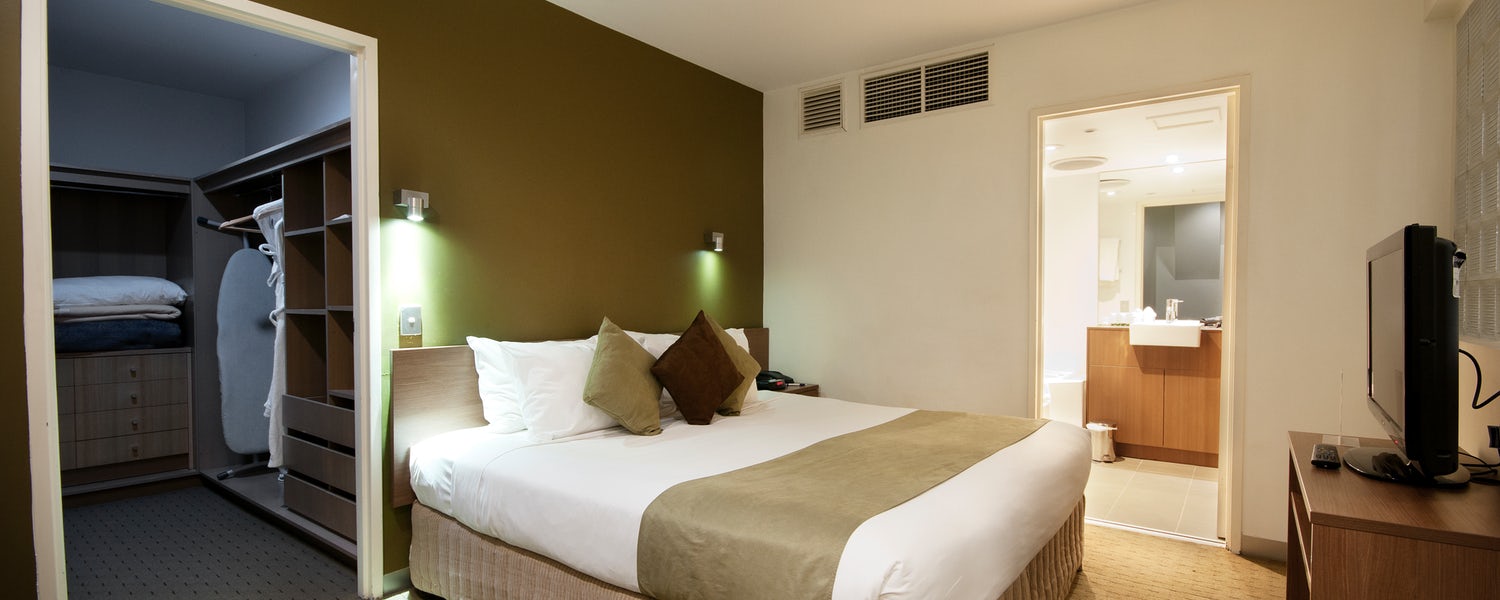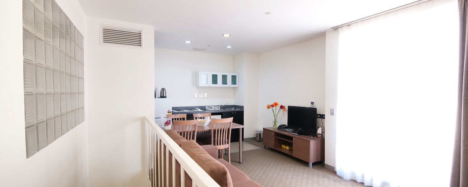 Featuring two feather-topped king beds, our split level Two Bedroom Apartment ensures a restful night’s sleep. The full kitchen, spacious dining and living room, two bathrooms and additional fold out sofa bed is your ideal home away from home with that little bit extra.