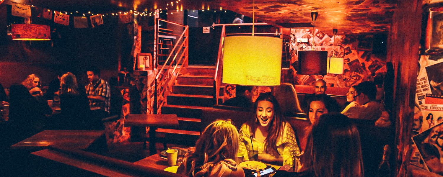 With thousands of vintage posters from the golden age of Mexican cinema lit by a dingy red neon, the entrance to Bodega Underground serves as a solid hint